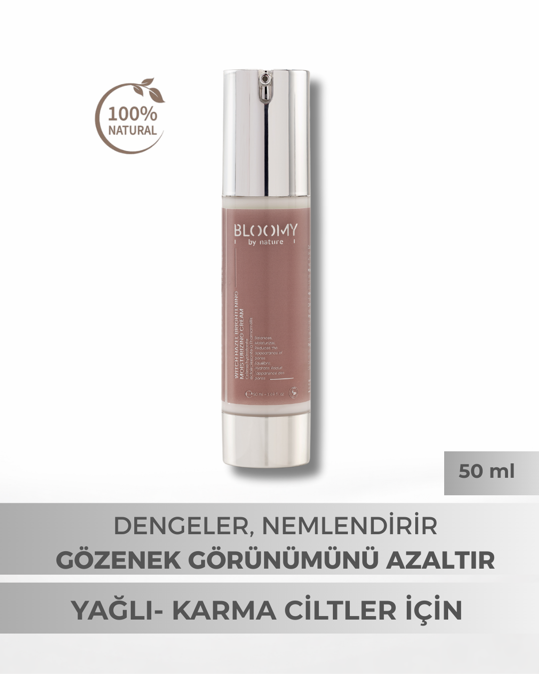 Satın Al| Bloomy By Nature Cadı Fındığı Aydınlatıcı Nemlendirici Krem, cildin ihtiyacı olan nemi sağlarken aynı zamanda gözenek görünümünü minimize etmeye ve cilt tonunu eşitlemeye yardımcı olan çok yönlü bir bakım kremidir. Hafif ve hızla emilen formülü sayesinde ciltte yağlı bir his bırakmadan uzun süreli nemlendirme sağlar.